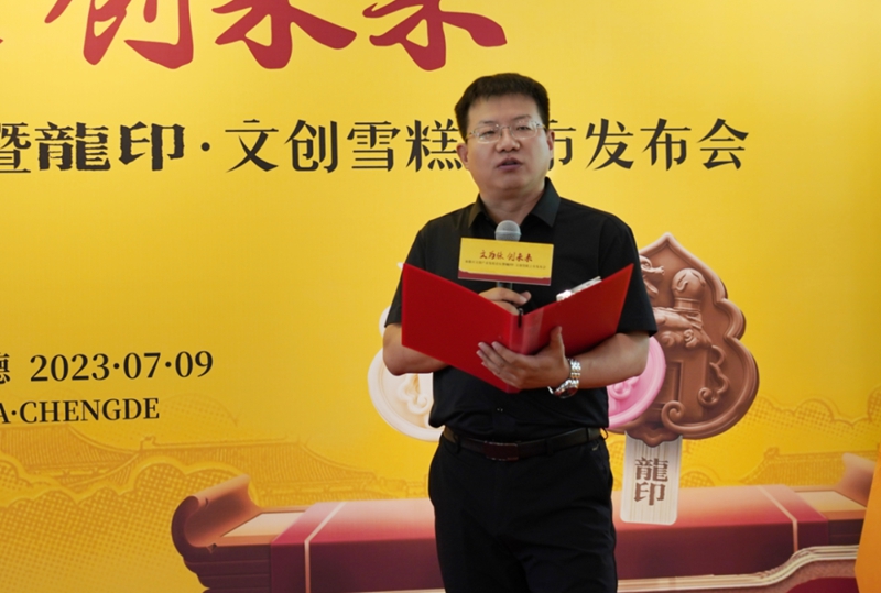 承德市總工會(huì)主席關(guān)繼高向前來(lái)參加本次發(fā)布會(huì)的各位領(lǐng)導(dǎo)、各位來(lái)賓表示熱烈的歡迎與衷心的感謝;本次承德市文創(chuàng)產(chǎn)業(yè)發(fā)展論壇旨在進(jìn)一步提升承德市文旅內(nèi)涵,激發(fā)文旅消費(fèi)潛能,對(duì)承德市皇家文化、飲食文化、酒文化、旅游康養(yǎng)文化進(jìn)行深入探討,促進(jìn)跨界融合,助力傳統(tǒng)文化創(chuàng)新表達(dá);板城酒業(yè)推出龍印·文創(chuàng)雪糕,必將為承德市文化、文創(chuàng)產(chǎn)業(yè)的繁榮發(fā)展以及建設(shè)國(guó)際生態(tài)旅游城市增添濃墨重彩的一筆;希望板城酒業(yè)能夠繼續(xù)秉承冀酒振興使命,為全力書(shū)寫(xiě)“生態(tài)強(qiáng)市、魅力承德”現(xiàn)代化新篇章作出更大貢獻(xiàn)!