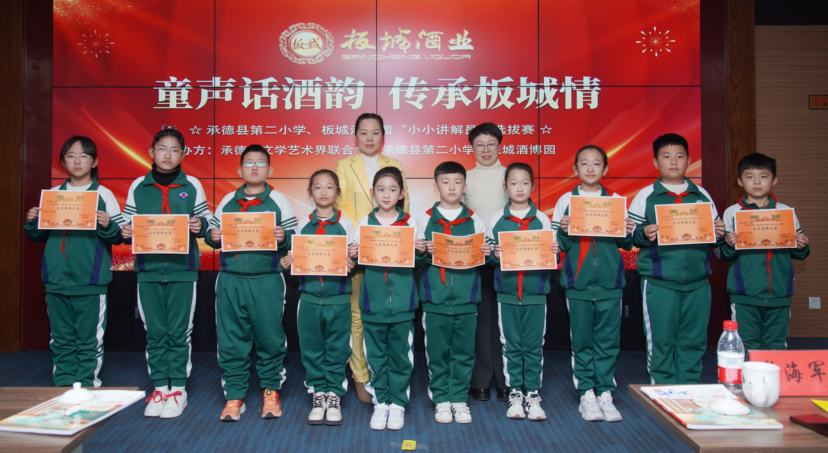 承德縣文學(xué)藝術(shù)界聯(lián)合會(huì)主席崔海軍、承德縣第二小學(xué)副校長(zhǎng)曲艷頗、承德縣第二小學(xué)副校長(zhǎng)尹曉娟、承德縣第二小學(xué)少先隊(duì)輔導(dǎo)員郭莉文、板城酒業(yè)行政總監(jiān)郝華杰、板城酒業(yè)行政部主管蘇恬靜出席活動(dòng)。