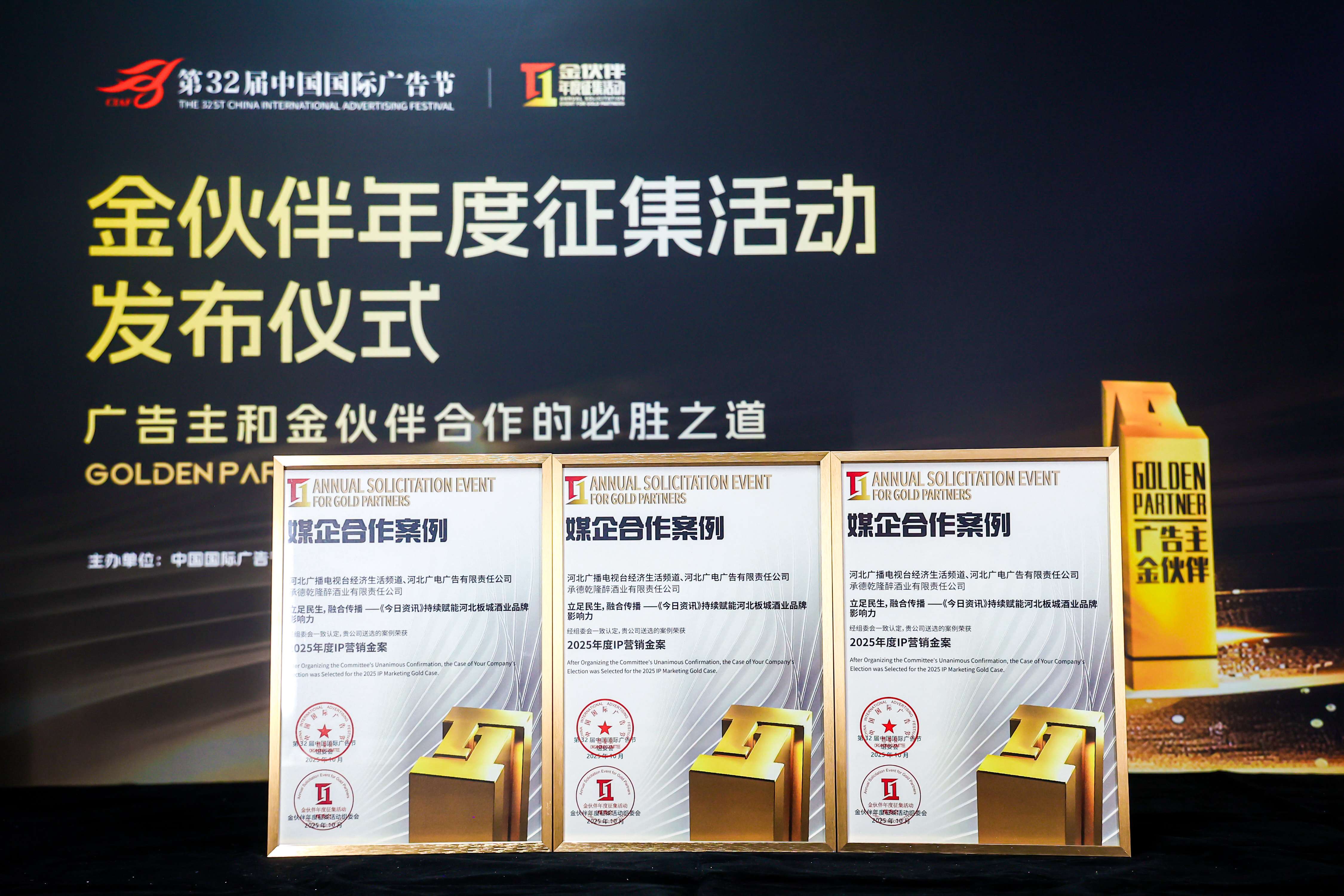板城酒業(yè)與河北經(jīng)濟(jì)生活頻道合作的“立足民生,融合傳播——《今日資訊》持續(xù)賦能河北板城酒業(yè)品牌影響力”案例榮獲2025年度IP營(yíng)銷金案。