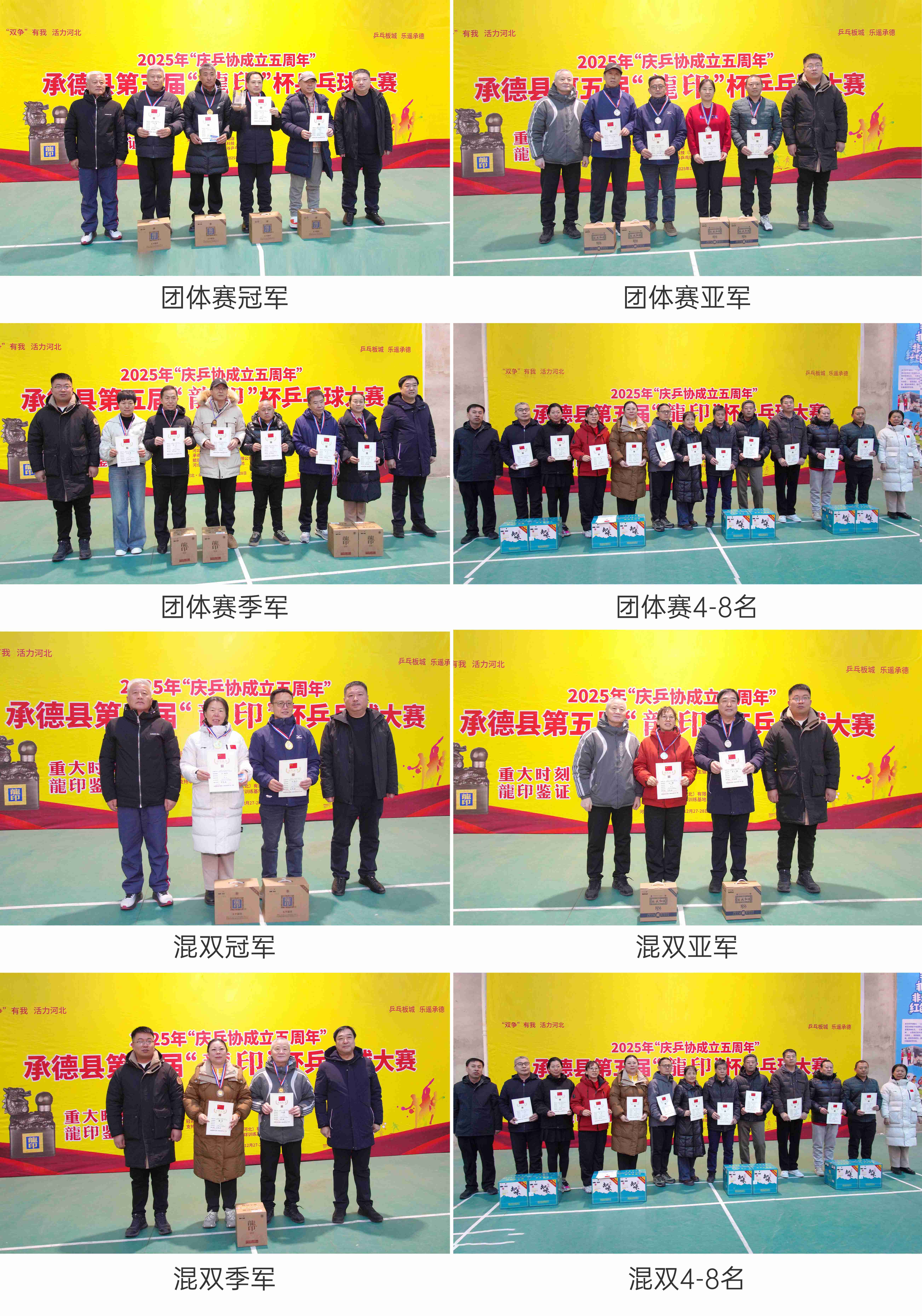 12月27日至28日,2025年“慶乒協(xié)成立五周年”承德縣第五屆“龍印杯”乒乓球大賽圓滿落幕。本次賽事由承德縣教育和體育局、承德縣旅游和文化廣電局聯(lián)合主辦;承德縣體育總會、承德縣乒乓球運動協(xié)會承辦;承德縣民政局、承德縣衛(wèi)生健康局、承德縣融媒體中心協(xié)辦;板城酒業(yè)連續(xù)五屆獨家冠名支持。