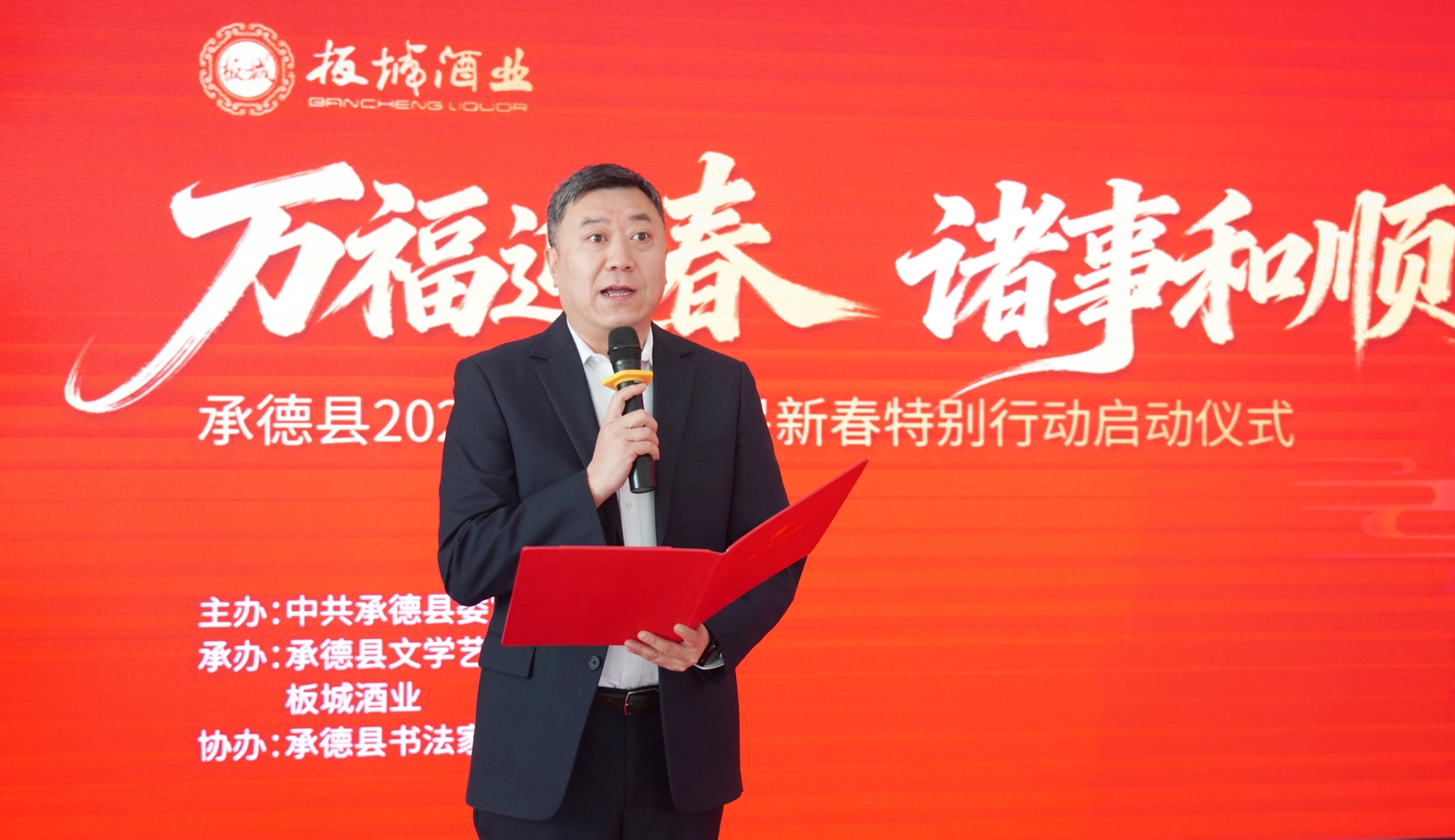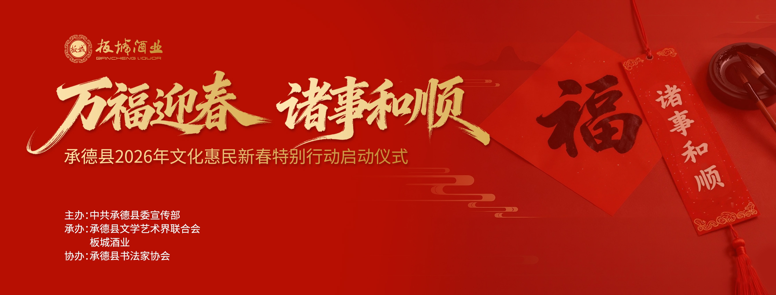 乙巳辭舊歲,丙午啟新程。1月16日,由中共承德縣委宣傳部主辦,承德縣文學(xué)藝術(shù)界聯(lián)合會(huì)、板城酒業(yè)承辦,承德縣書法家協(xié)會(huì)協(xié)辦的“萬(wàn)福迎春·諸事和順——承德縣2026年文化惠民新春特別行動(dòng)啟動(dòng)儀式”在板城酒業(yè)圓滿舉辦!